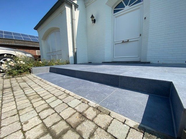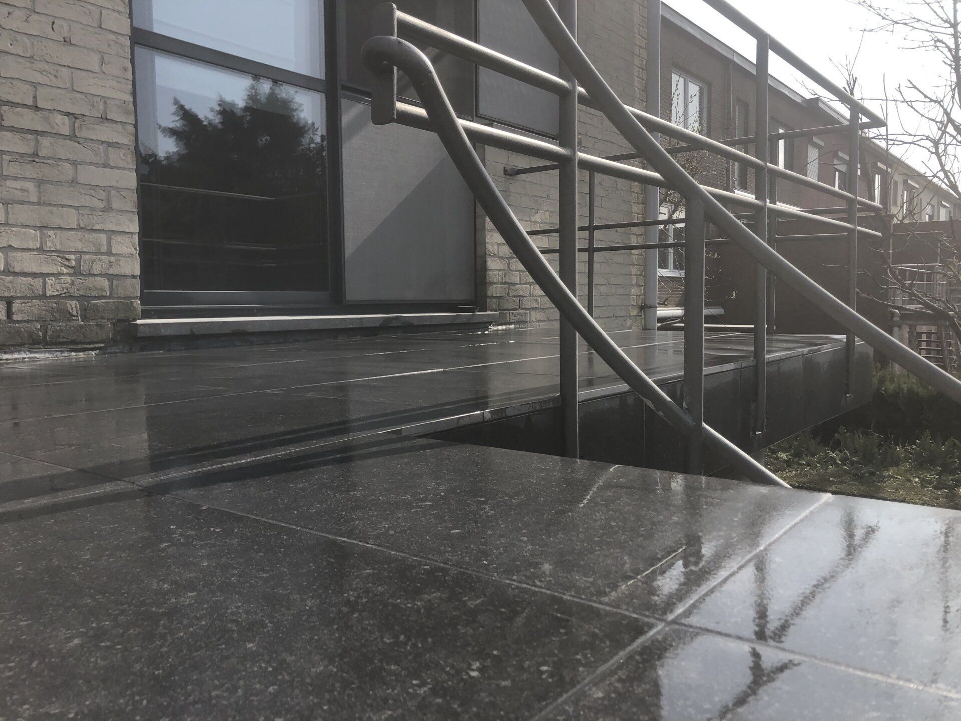Terras en trapblokken in natuursteen blue pearl 100 x 100 x 3