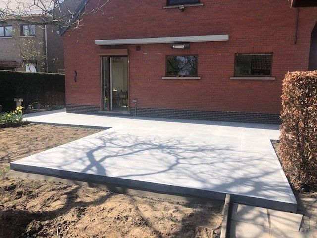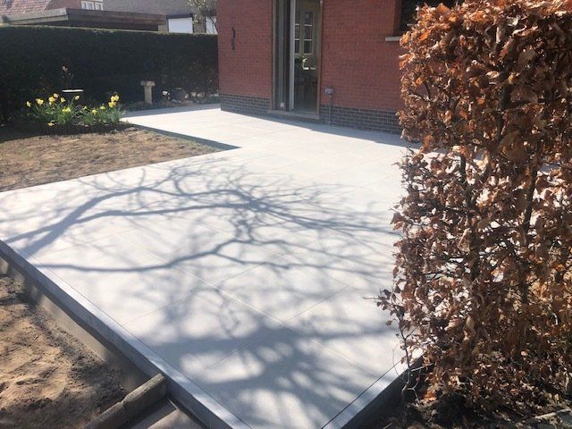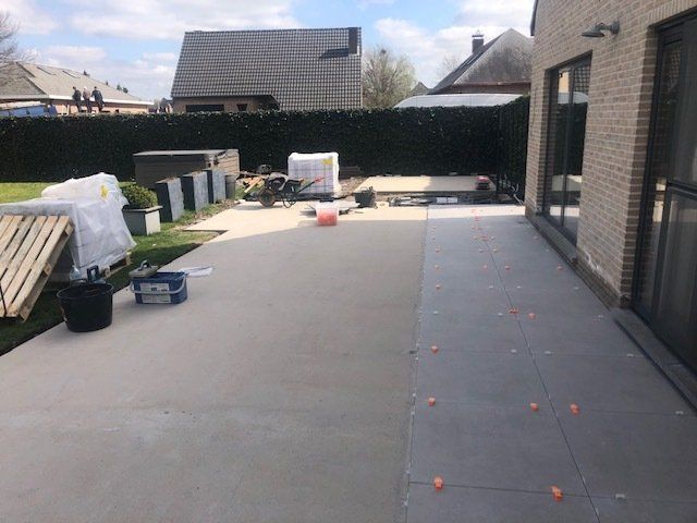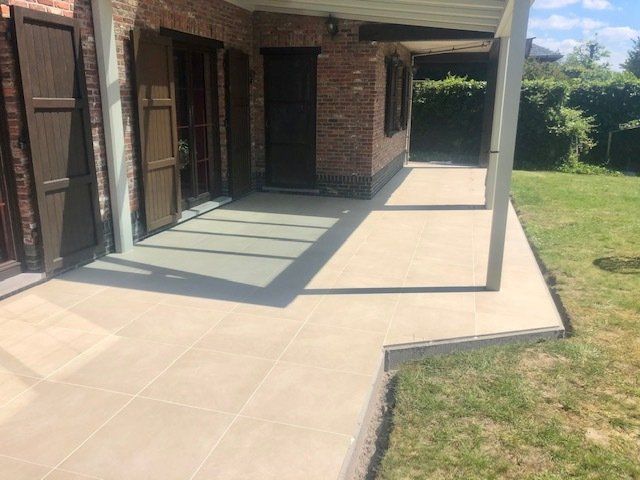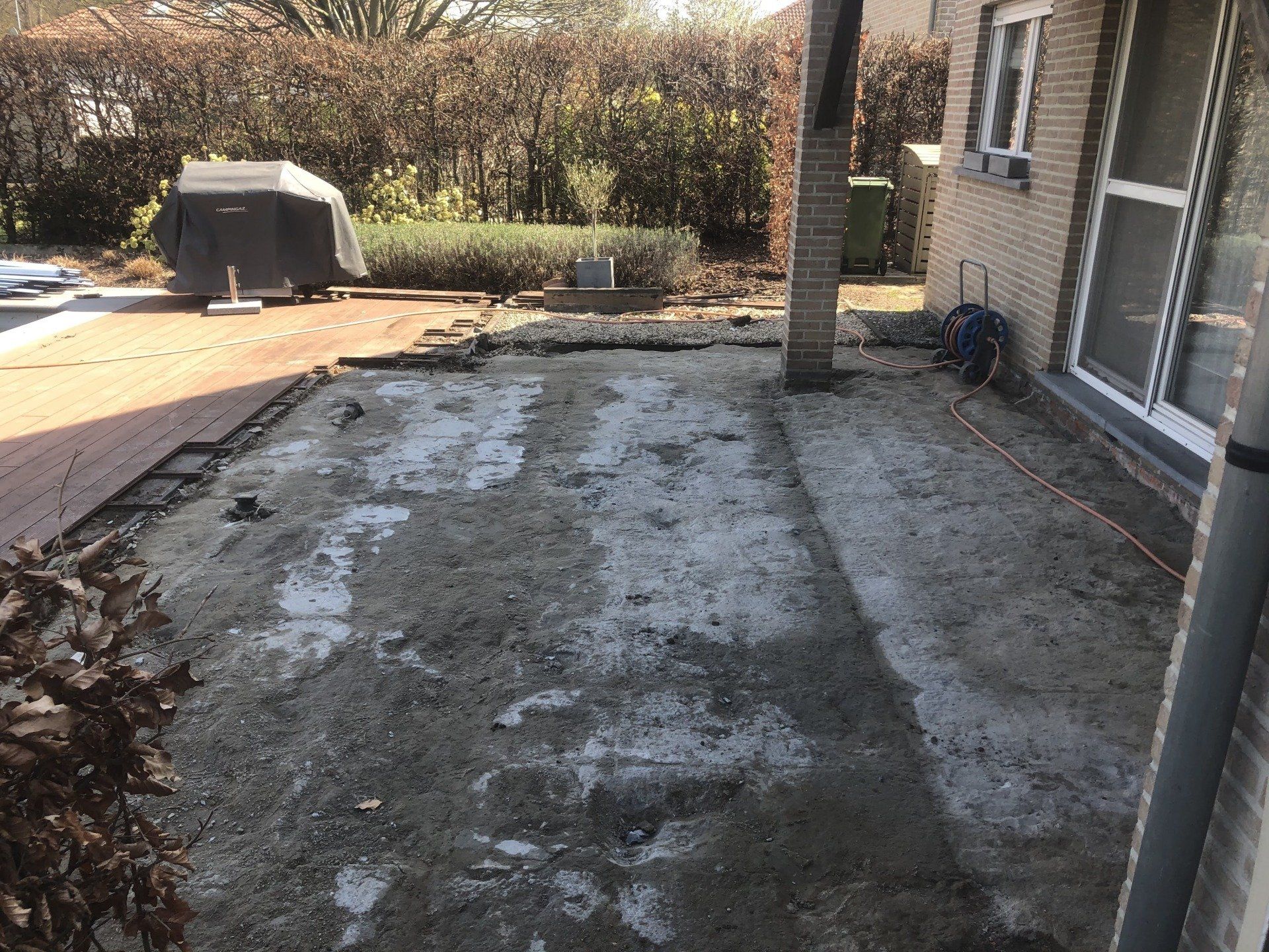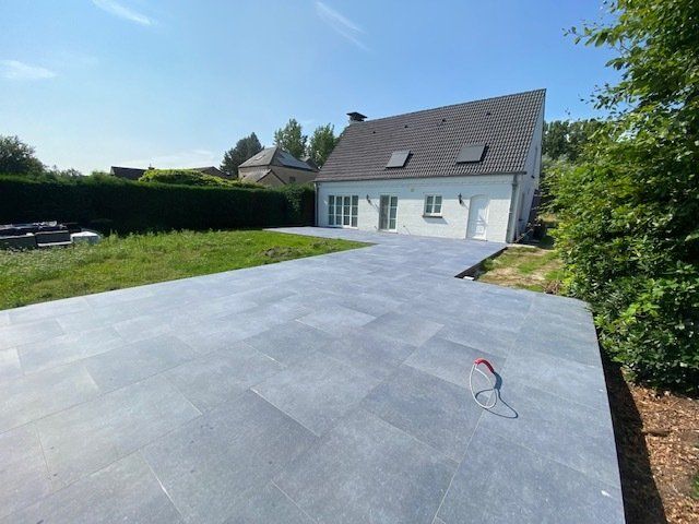 Renovatie van een bestaand terras in natuursteen (opschuren en opnieuw invoegen)