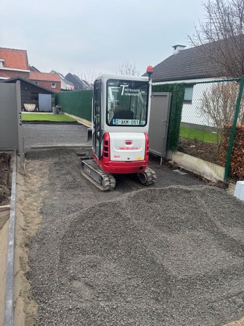 Oprit in nidagravel met stabilisatiematten aansluitend aan het terras,