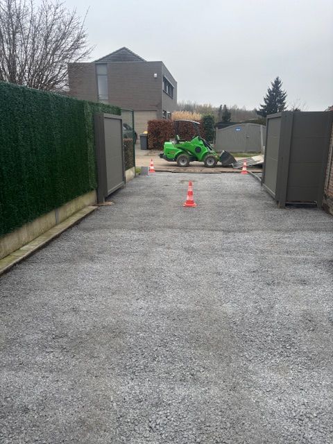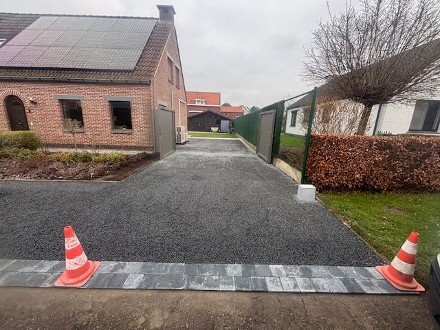Oprit in nidagravel stabilisatiematten opgevuld met nerobasalt siergrind,