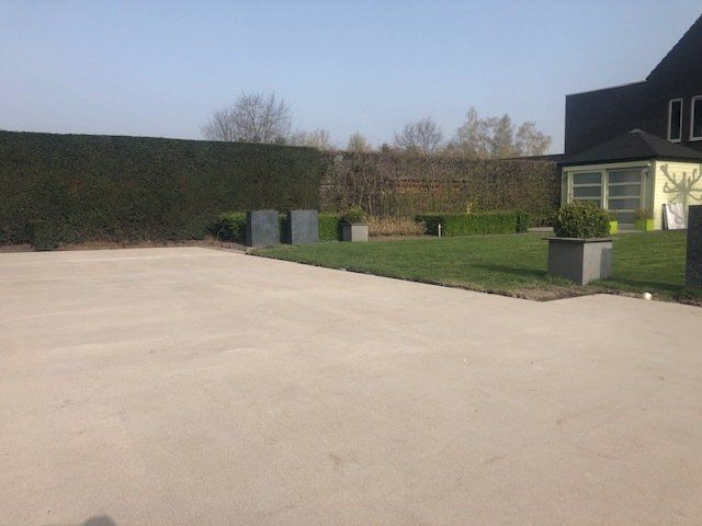 Nidagravel stabilisatiematten afgeboord met ecolat en opgevuld met yellow sun siergrind